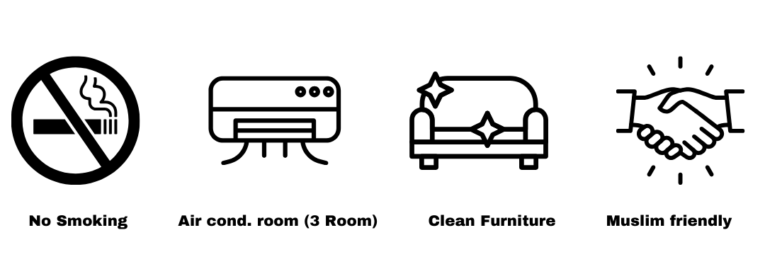 Mempunyai 3 Bilik yang dilengkapi Penyaman Udara ( Air Cond.) beserta 2 bilik air.