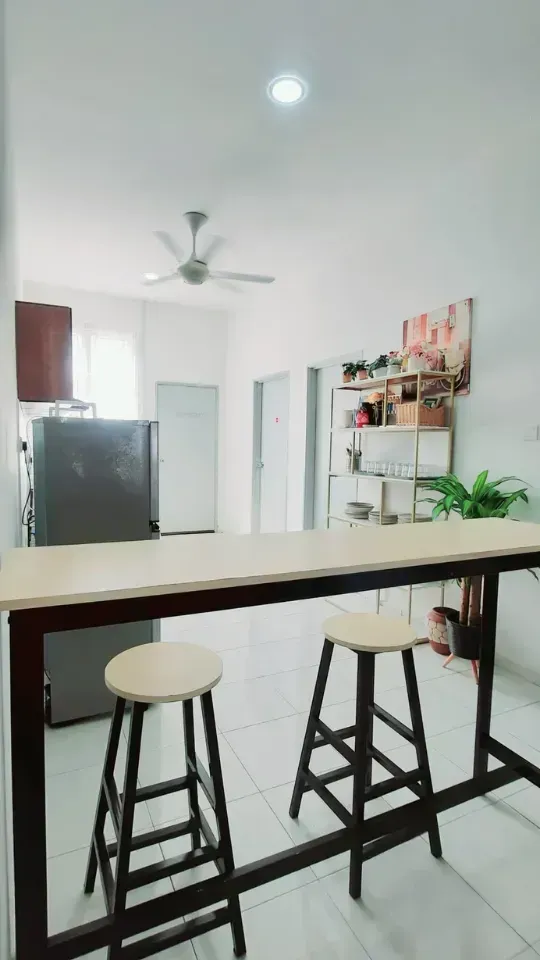 Ruang makan ada meja makan + 6 kerusi serta meja bar 2 kerusi.